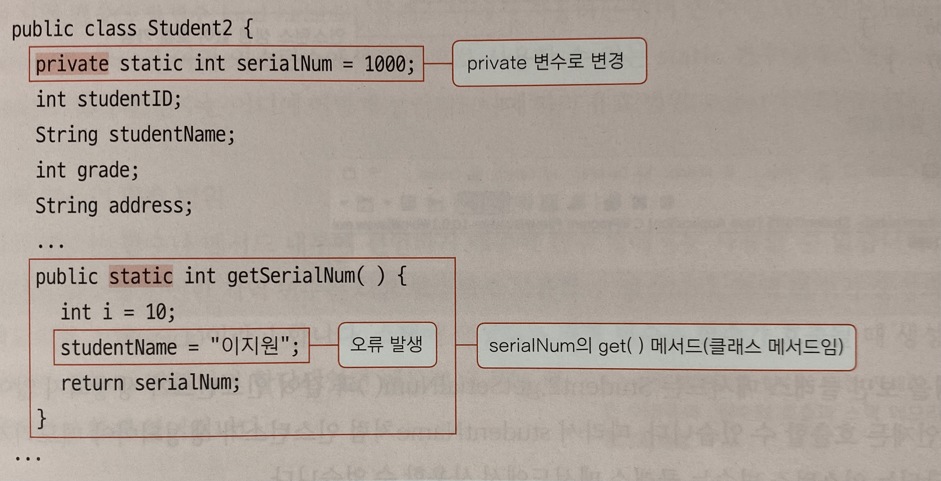 - private가 아니라면 클래스 외부에서도 객체 생성과 무관하게 사용 가능
