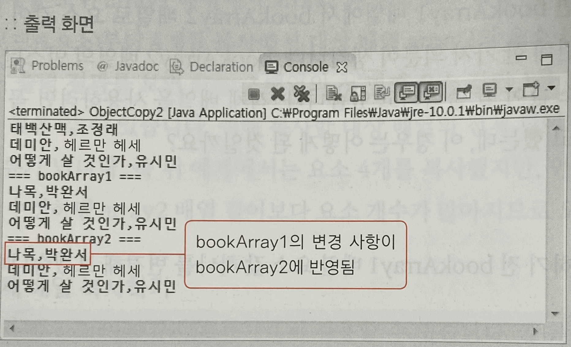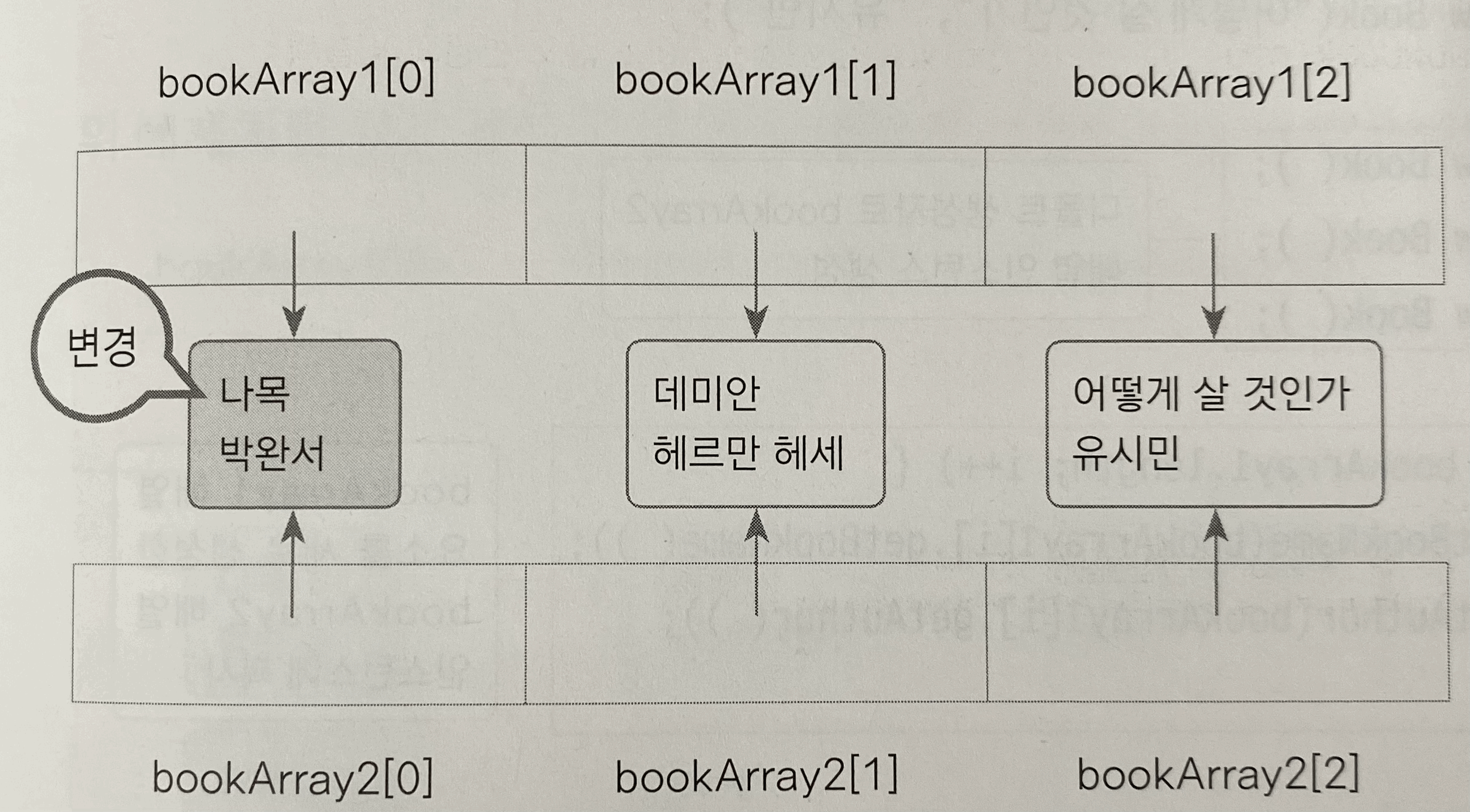 bookArray1[0].setBookName("나목"); // 첫번째 배열의