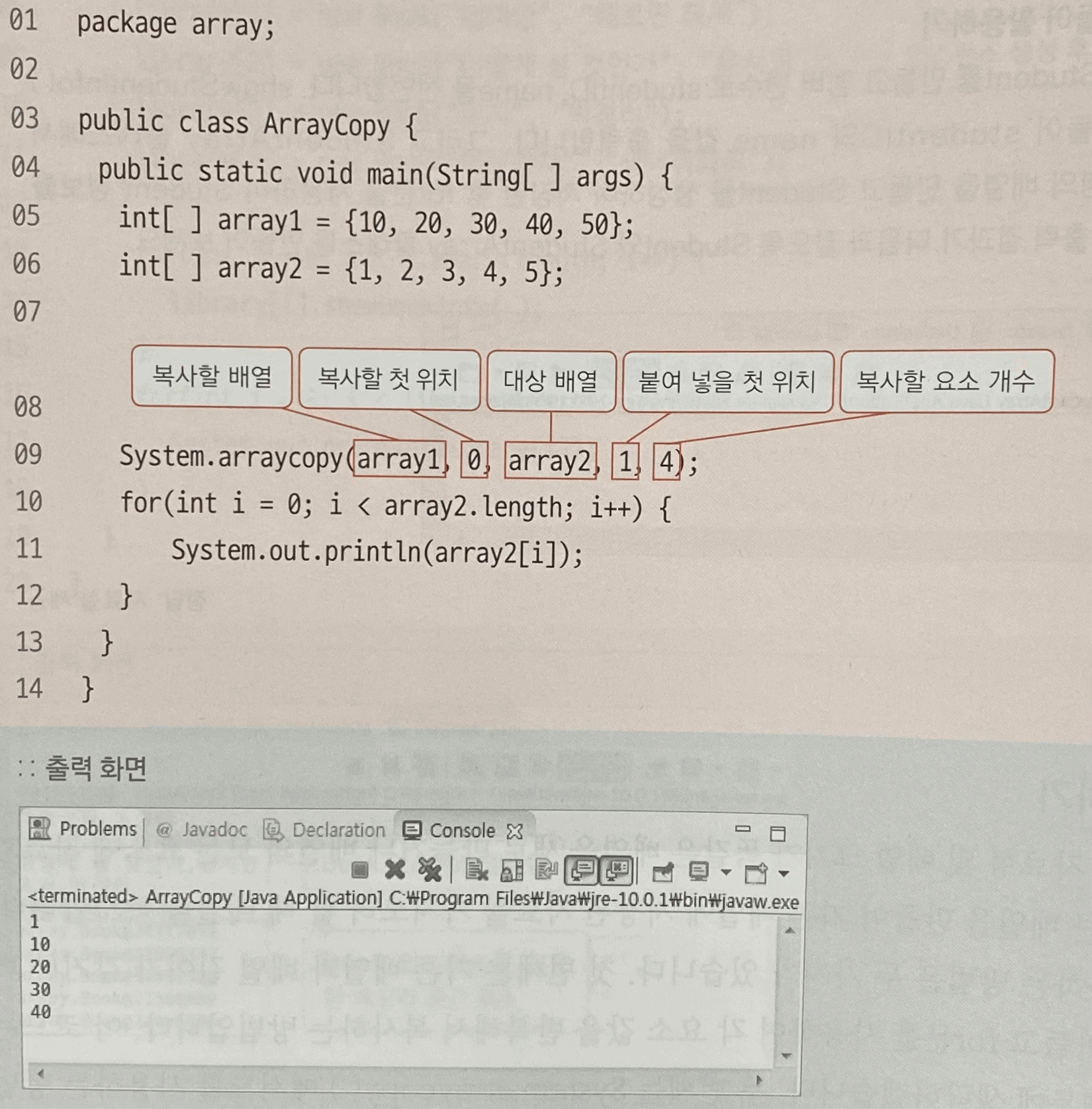 - 방법 2 : System.arraycopy( ) 메서드를 사용하여 복사