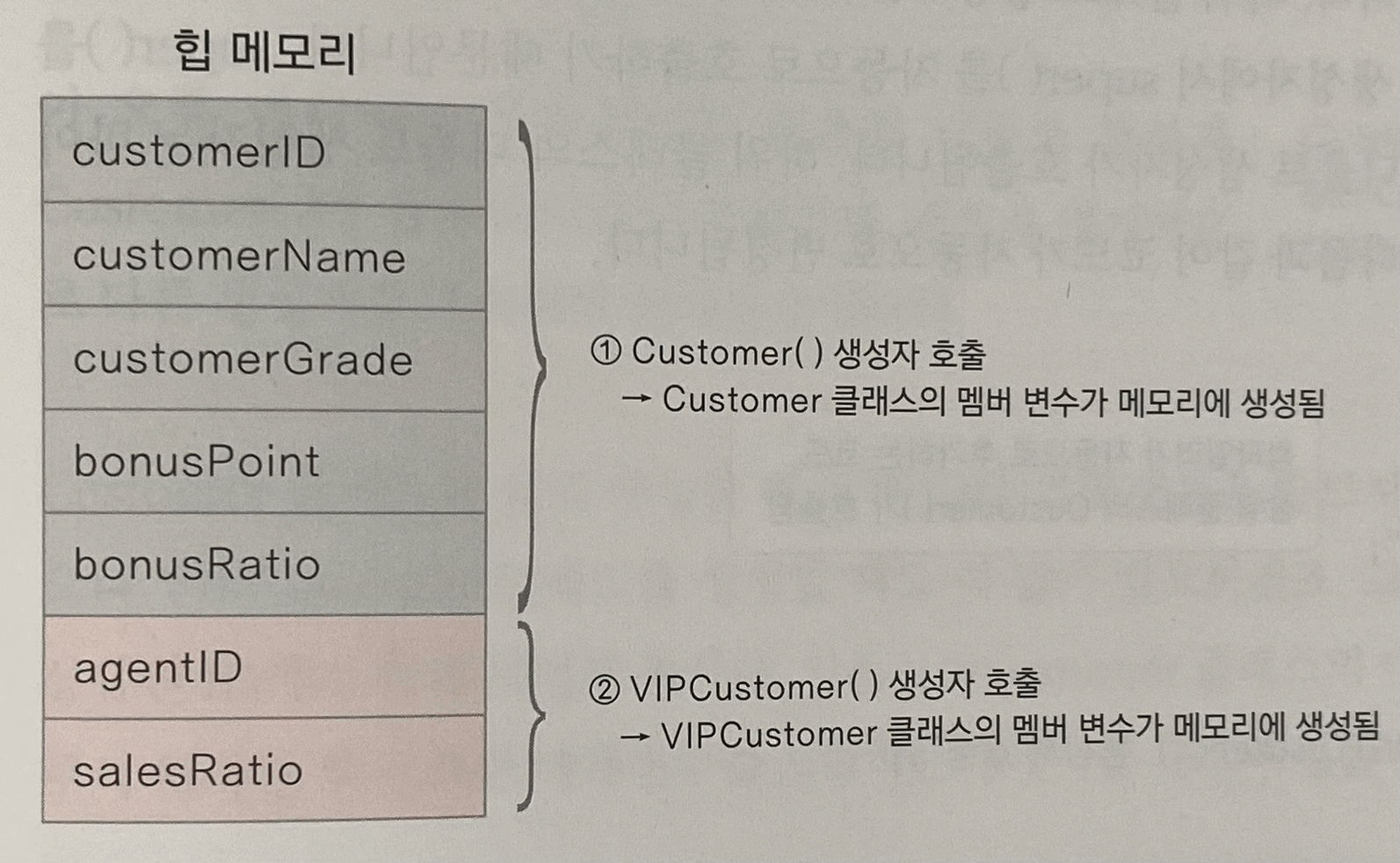 - 상위 클래스의 변수가 메모리에 먼저 생성되기 때문에 하위 클래스에서 이 값들을 사용가능 한 것!!
