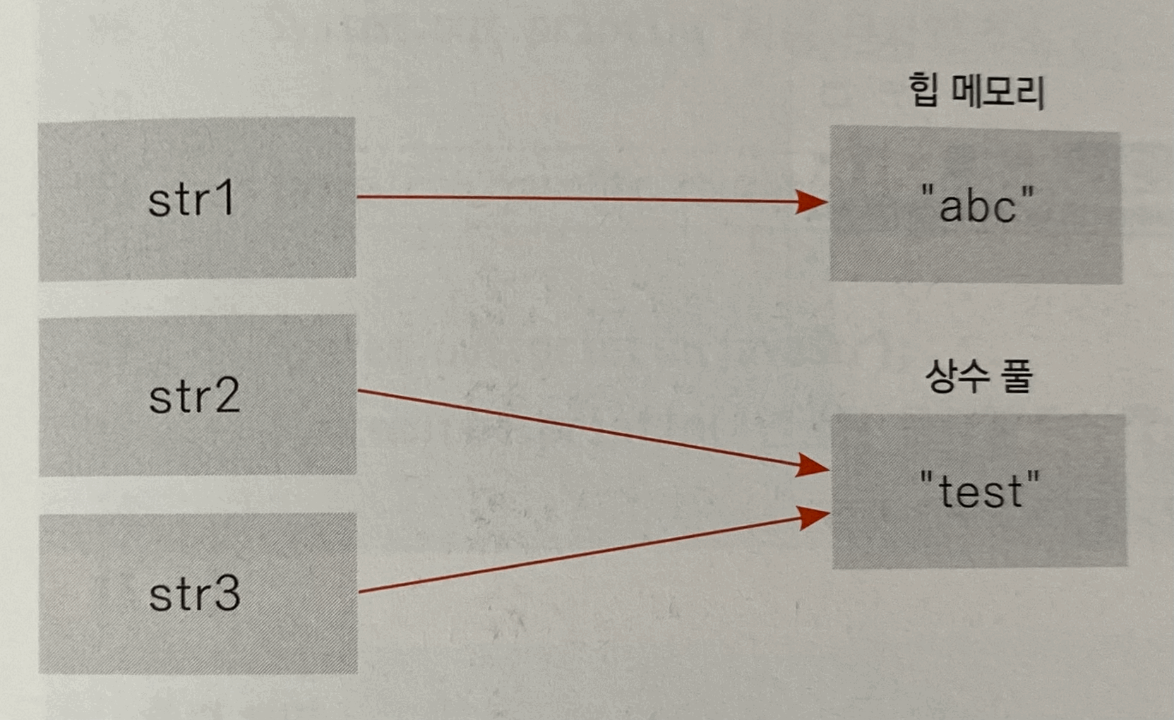 - new 예약어 사용시 "abc" 문자열을 위한 메모리가 할당되고 새로운 객체가 생성됨