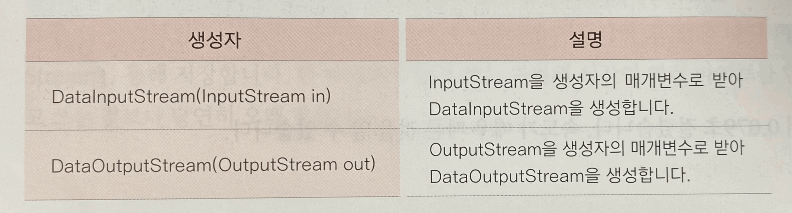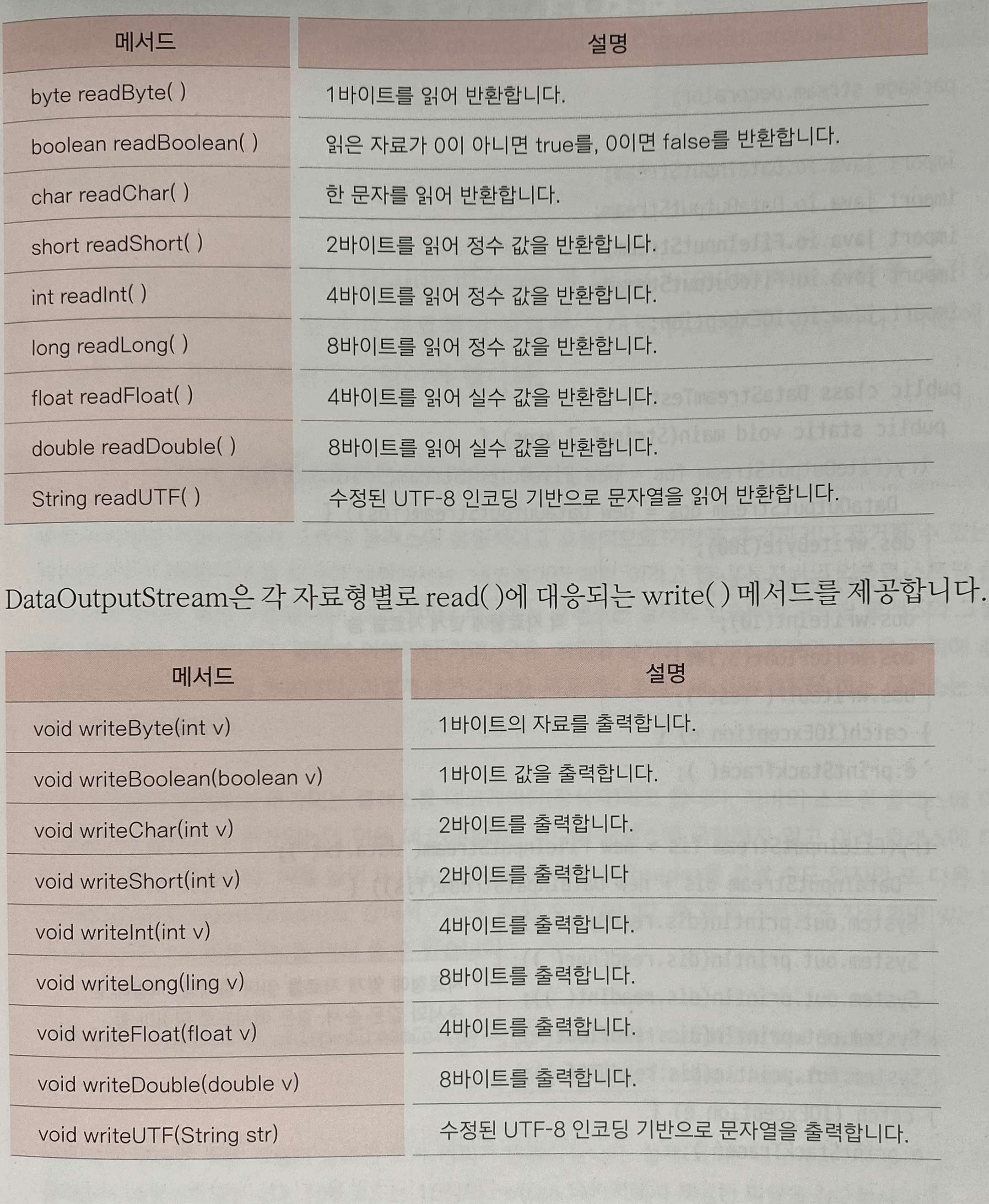 - 구현한 인터페이스 종류 : DataInput, DataOutput