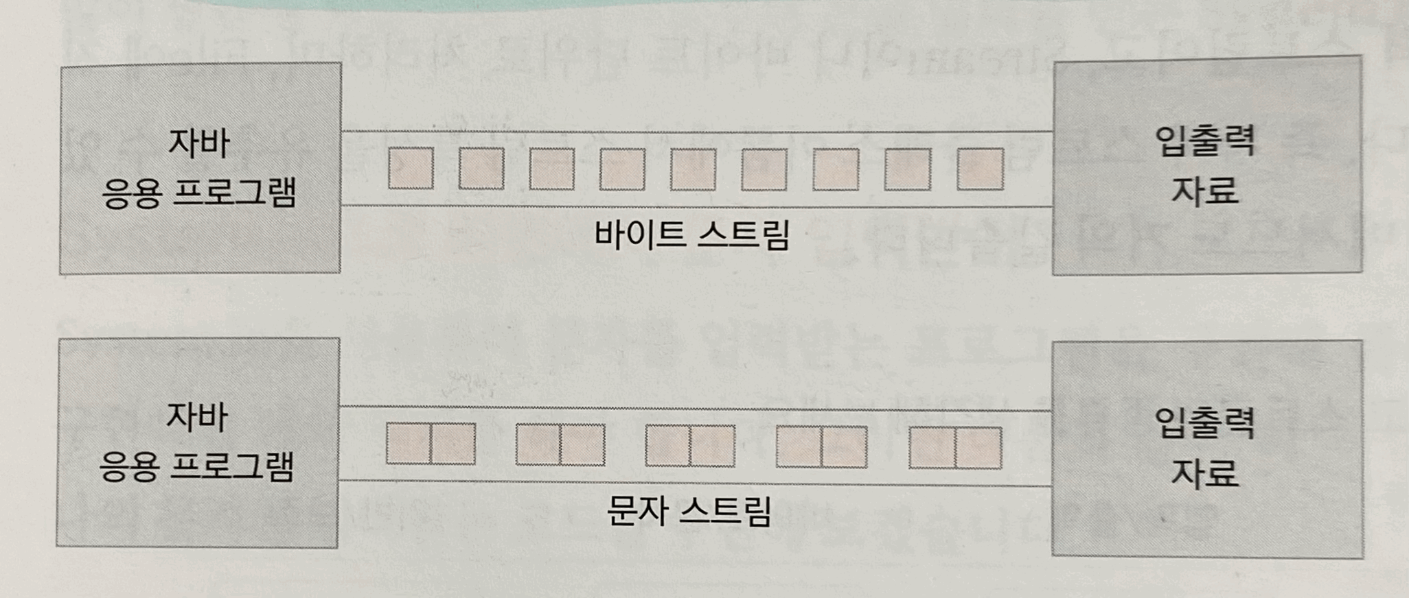 - 읽어 들이는 자료형에 따라 바이트용과 문자용 스트림이 있다.