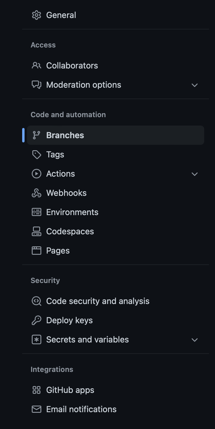 2. 사이드바 메뉴에 Branch를 클릭한다.